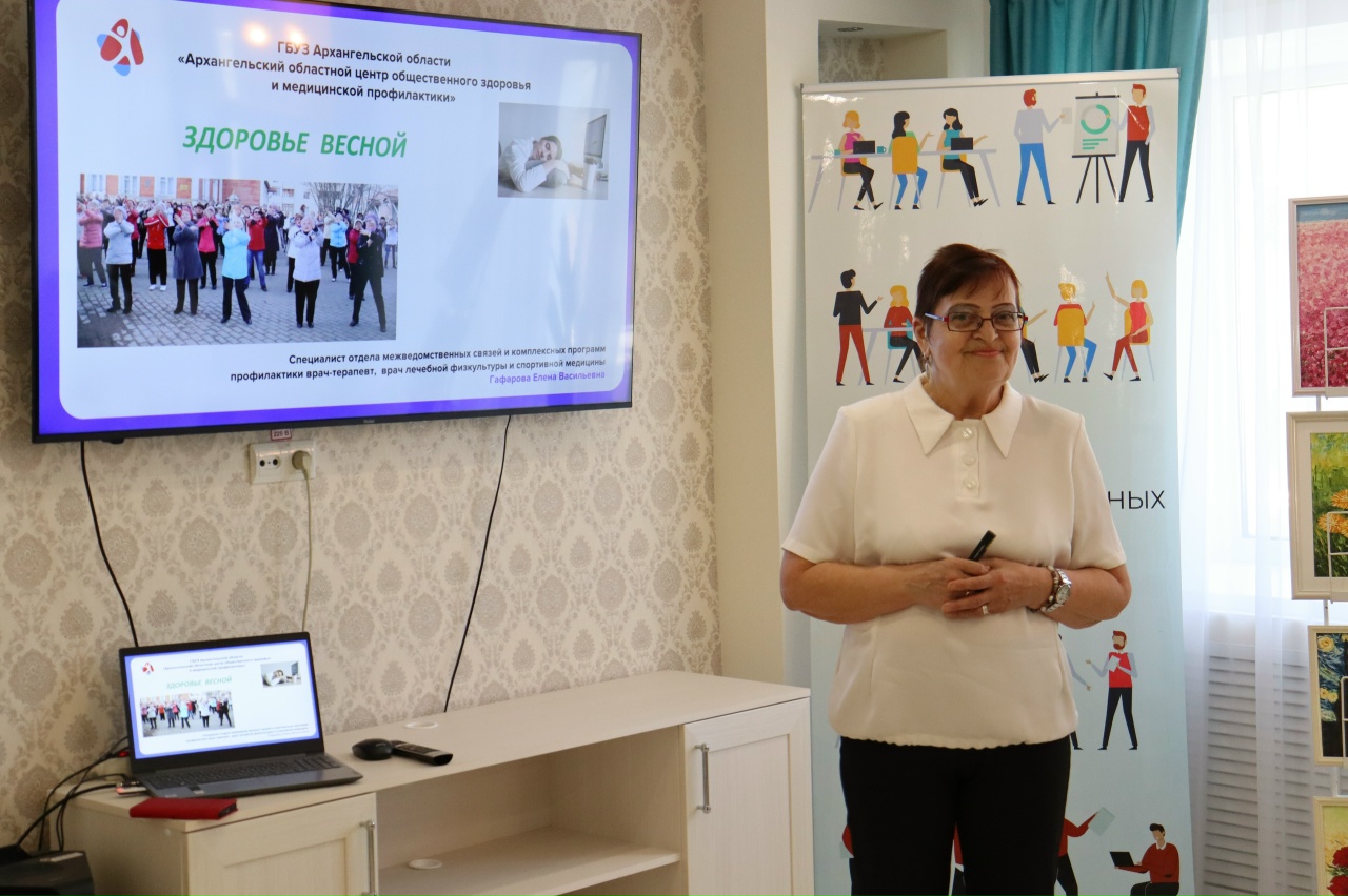 6 апреля 2026 года в Центре общественных инициатив городской центральной библиотеки Новодвинска прошла познавательная лекция с танцевальной разминкой «Здоровье весной» в рамках работы клуба «Активное долголетие».