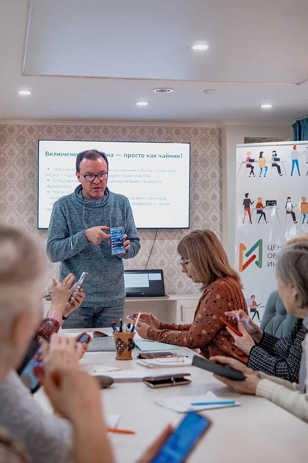 На курсах люди старшего поколения учатся уверенно пользоваться всеми возможностями современного гаджета — без стресса и с поддержкой опытных наставников.