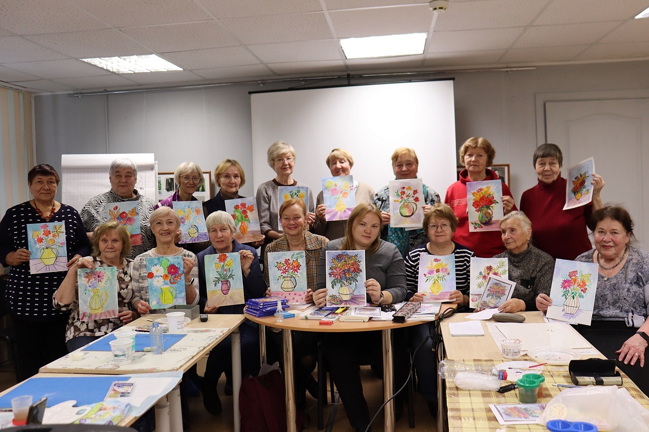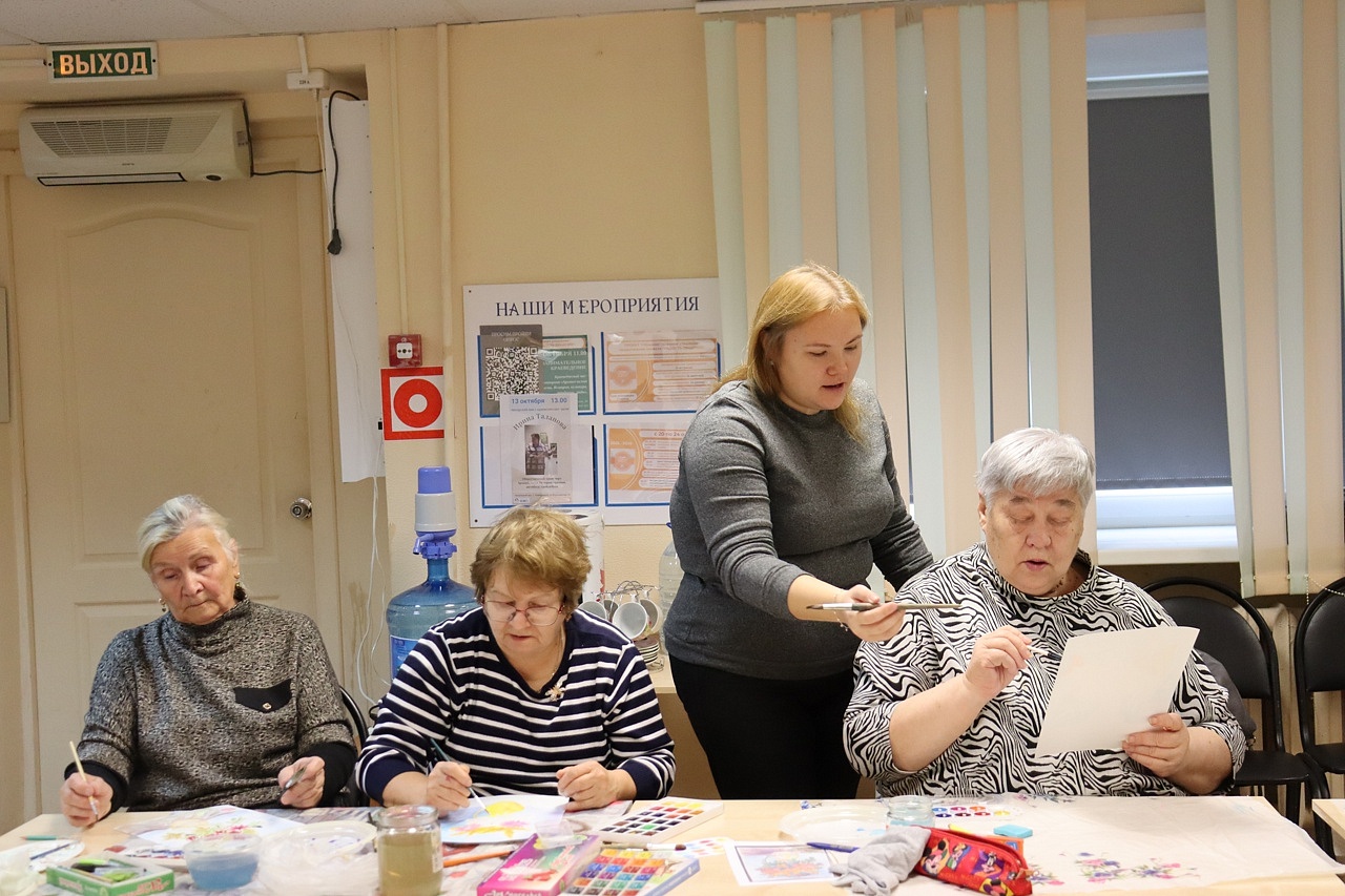 В рамках проекта в читальном зале проводится авторский цикл уроков рисования от Екатерины Захаровой «Акварель и не только. Картина за одно занятие» для людей «серебряного» возраста. 22 октября прошёл первый урок рисования под руководством Екатерины Захаровой, на котором участники создавали свой «Осенний букет», осваивая смешанную технику с использованием акварели, гелевой ручки, маркера и цветных карандашей. Полтора часа творчества пролетели незаметно, подарив радость и психологическую разгрузку. Второй урок рисования «Натюрморт с тыквой» состоится в библиотеке 29 октября в 10:00.
